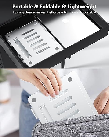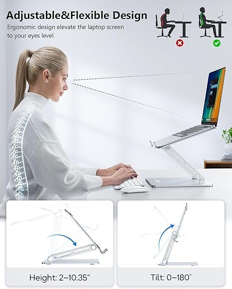 NTMY Aluminum Laptop Stand for Desk, Adjustable Laptop Stand, Folding Laptop Riser for Desk, Computer Notebook Stand Compatible with MacBook Air Pro, HP, ASUS, Lenovo, Dell (10-16) – Silver